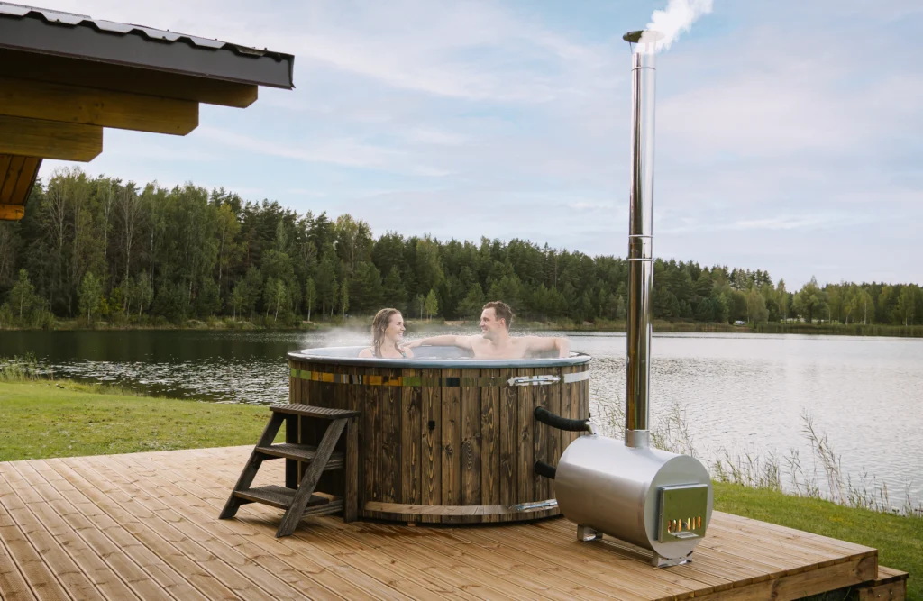 Hot tubs or bath tubs are characterised by their natural look and pleasant wooden ambience. They are energy efficient, as they are often heated with wood, and offer an authentic outdoor bathing experience. They are also often cheaper to purchase and maintain than modern whirlpools.