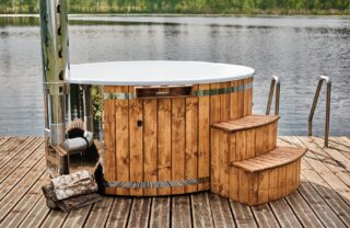 The powerful V4A stainless steel stove with its elegant glass panel does more than just heat efficiently. It also offers a fascinating display of dancing flames. A 2-meter chimney, including a rain cap, ensures optimal smoke extraction. A sturdy grate and durable stainless steel rings highlight the quality and safety. A stylish and stable set of stairs allows for a comfortable entry into your bathing paradise.