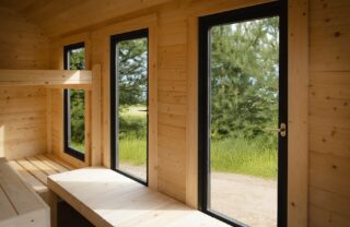 The Tiny House Ceres offers solid basic equipment in a functional space with a choice of colours from the catalogue. Inside, it has a bed, a fixed table, two benches, a standard wooden door and an opening window. The electrical installation includes an interior lamp, a socket and a fuse box. Numerous extensions are also available for individual customisation.